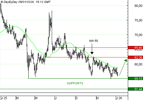 La rupture du support à 55,1 dollars étendrait la baisse à 51,44 dollars.