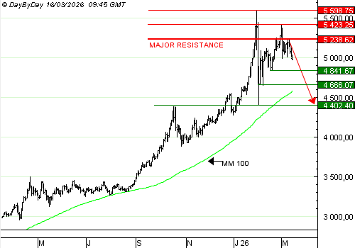 Le franchissement de la résistance à 5 238,62 dollars invaliderait ce développement baissier à court terme.