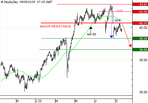 Axa a buté sur une résistance de court terme, mais sans accélération baissière. La décision de la Fed n'entraine pas de baisse de taux, et le contexte reste donc favorable aux valeurs financières. Les indices ne faiblissent pas encore, et nous préférons en conséquence clôturer cette position qui reposait sur une possible consolidation des actions après la réunion de la Fed.