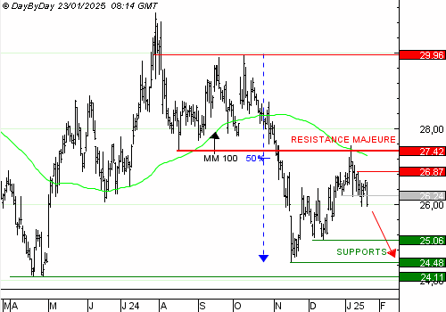 Le reliquat sera conservé afin de viser les supports suivants à 25,06, voire 24,48 USD.