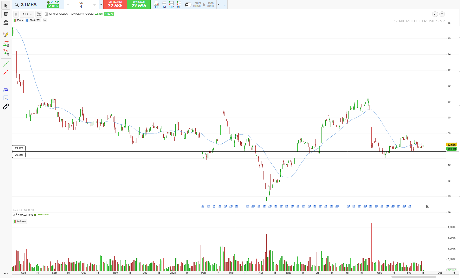 Fourchette : 3.39/3.40. sur un cours de STMicroelectronics à 22.66€