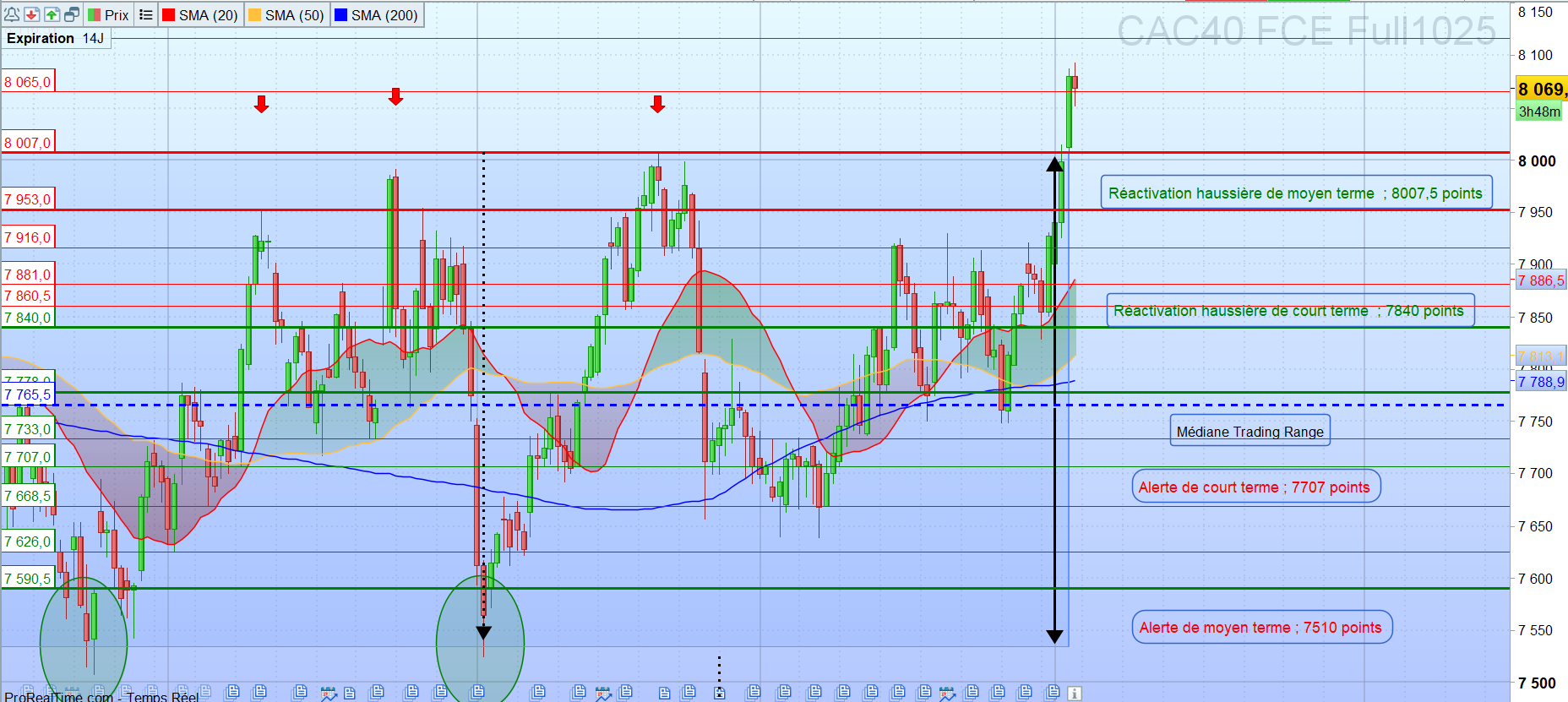 Les résistances sont : 7860,5 et 7881 puis 7916 et 7953 voire 8007 (invalidation du double top) puis 8065 et 8116,5 voire 8395