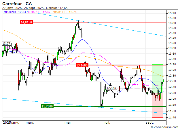 Les analyses réalisées par la société Surperformance, éditrice du site zonebourse.com, n'ont aucune valeur contractuelle et ne constituent en aucun cas une offre de vente ou une sollicitation d'achat de valeurs mobilières ou autre produit financier.
